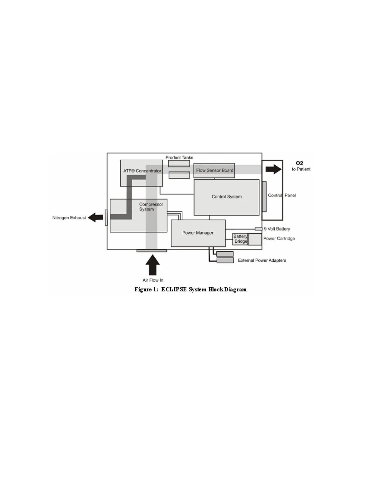 The Eclipse uses a passive system to separate oxygen from air. Air flows into the Eclipse where it is