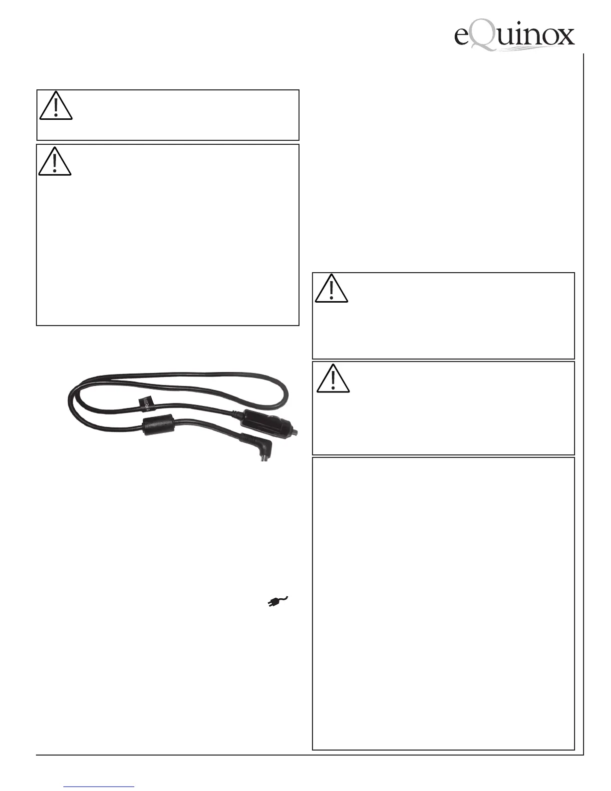 Note: When operating the eQuinox from a 12VDC Cable, it is recommend-