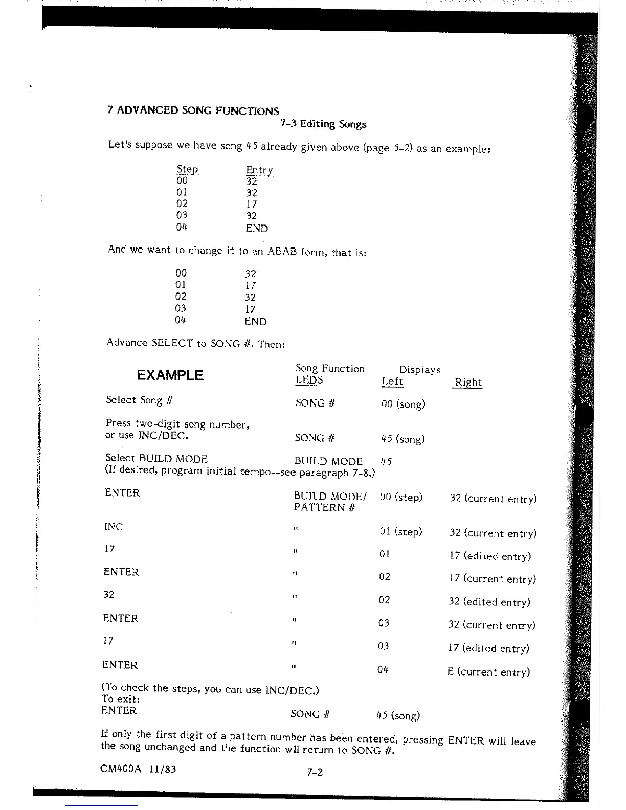 Sequential Drumtraks 400 - Appending Songs; Editing Songs
