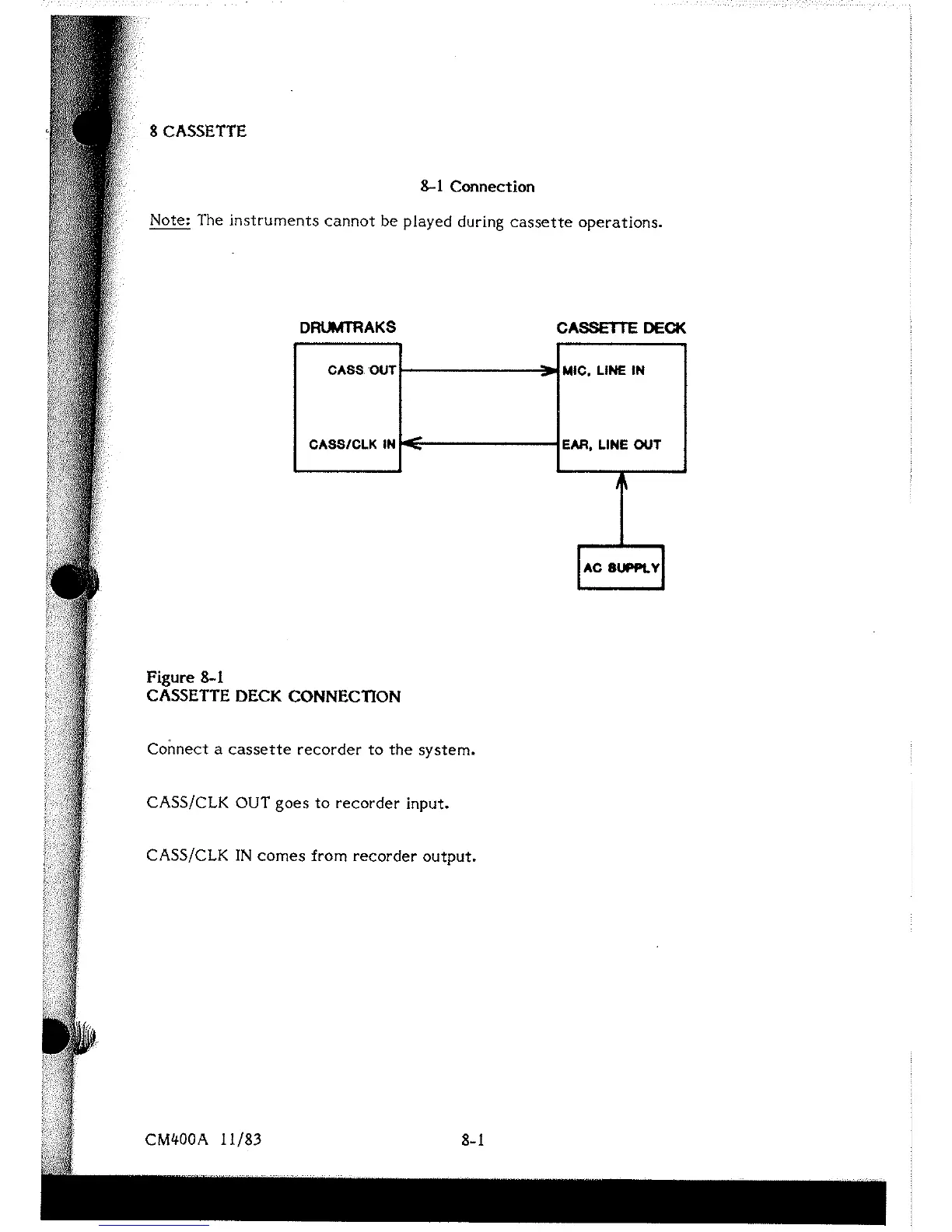 Sequential Drumtraks 400 - Cassette Operations; Connection