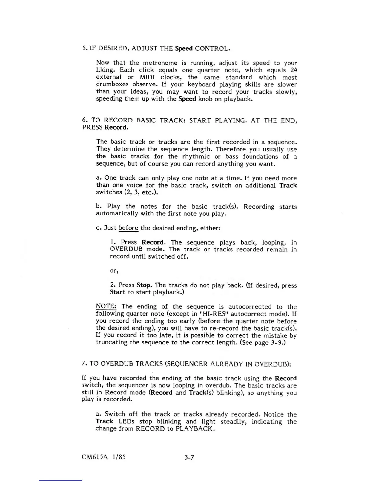 Sequential Multi-Trak - Adjust the Speed Control; To Record Basic Track; To Overdub Tracks