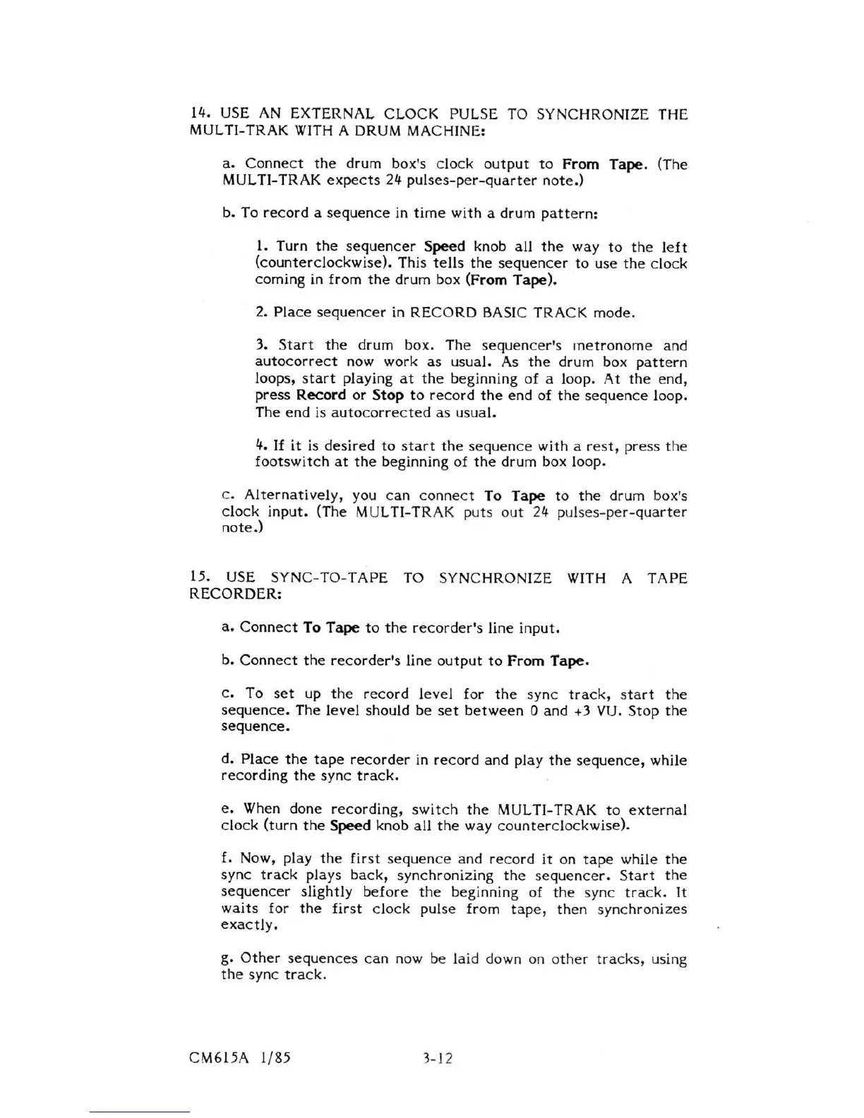 Sequential Multi-Trak - Use Sync-To-Tape to Synchronize with a Tape Recorder