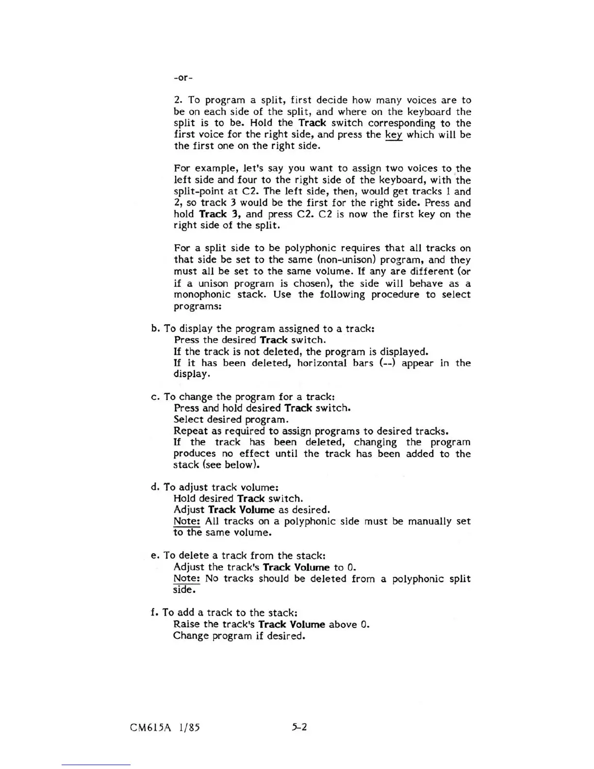 Sequential Multi-Trak - To Change the Program for a Track; To Adjust Track Volume; To Delete a Track from the Stack; To Add a Track to the Stack