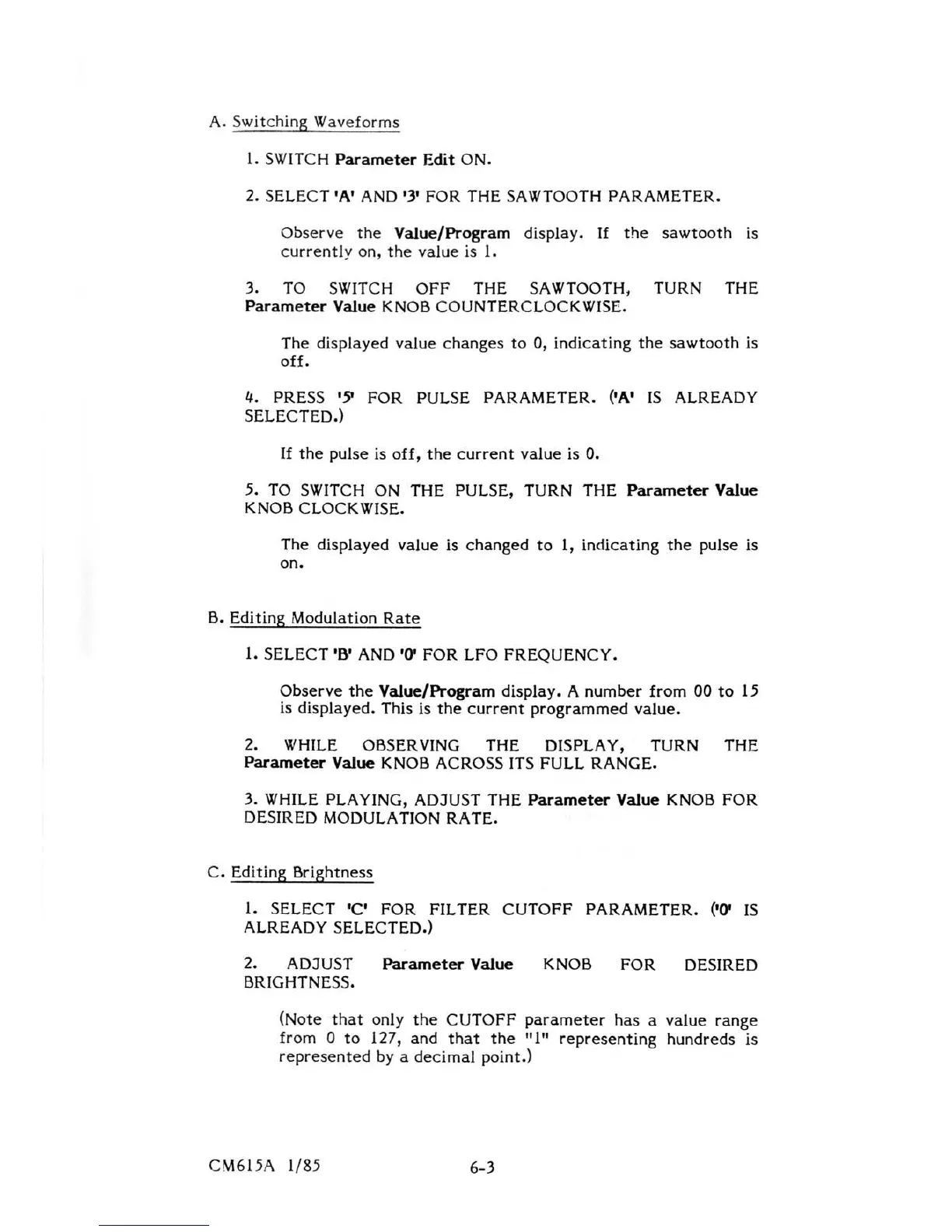 Sequential Multi-Trak - Switching Waveforms; Editing Modulation Rate; Editing Brightness