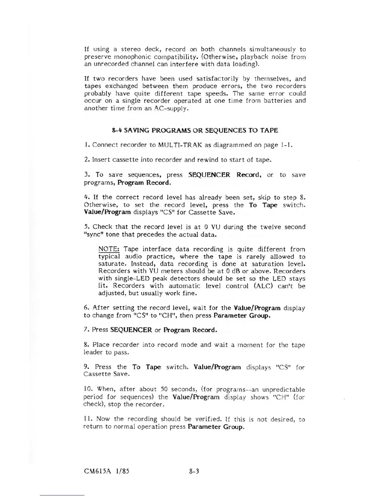 Sequential Multi-Trak - Saving Programs;Sequences to Tape