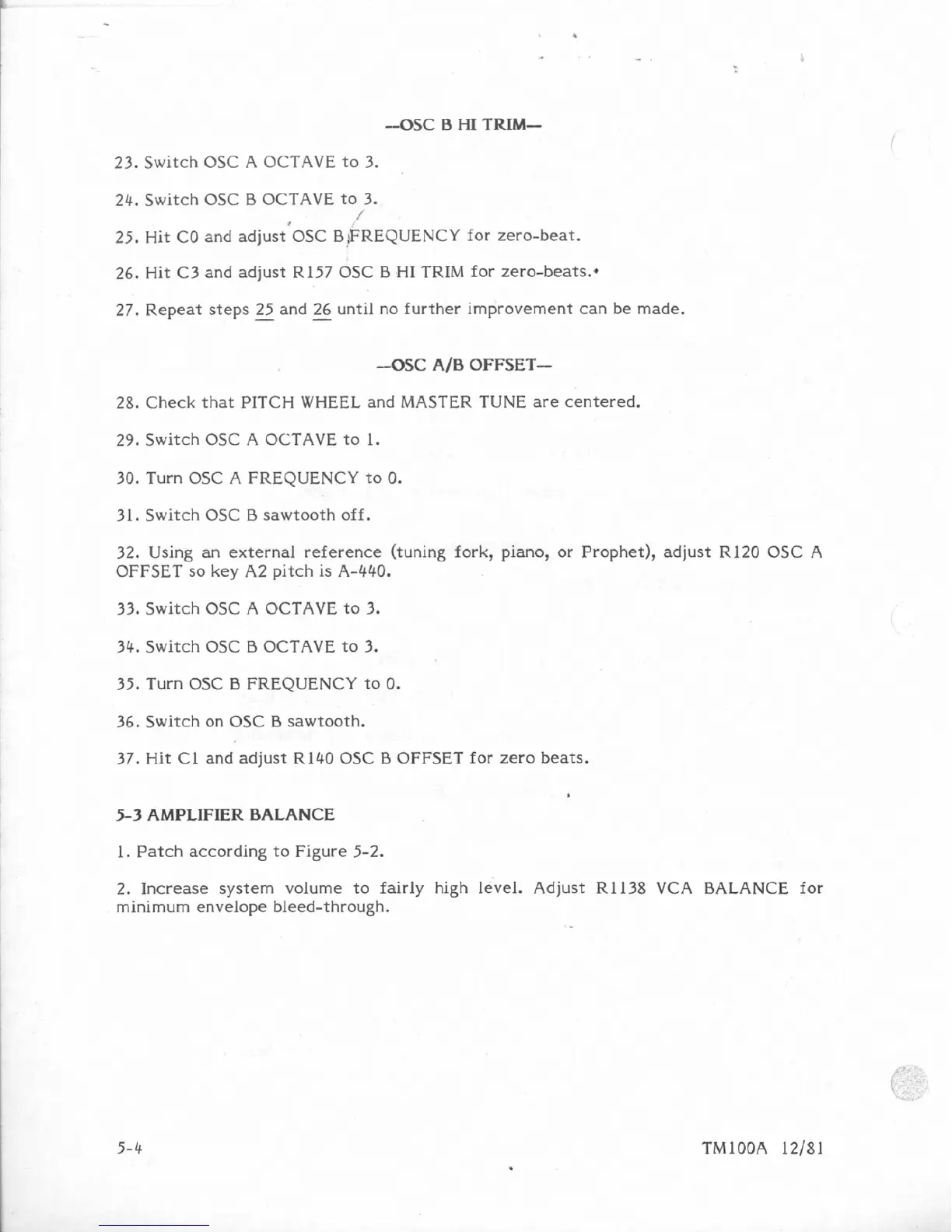 Sequential Pro One - Amplifier Balance; OSC B Hi Trim; OSC A;B Offset
