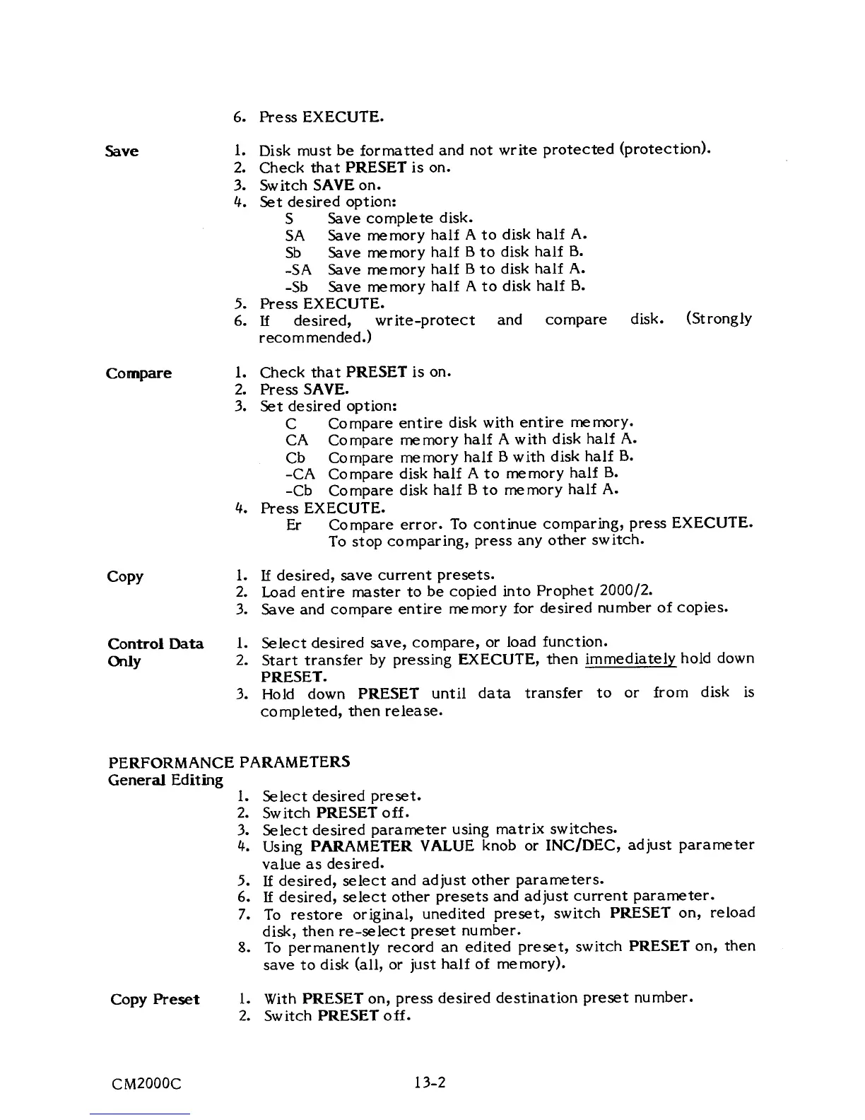 Sequential Prophet 2002 - Performance Parameters; General Editing