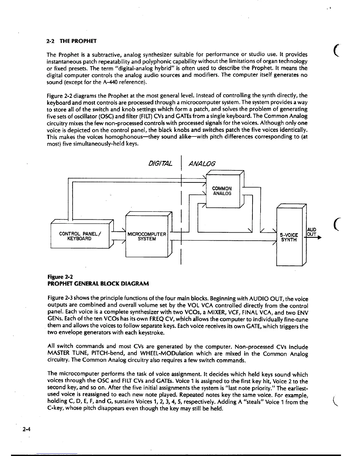 Sequential Prophet-5 1000 - 2-5 Mixer Section Function; 2-6 Filter Module Operation