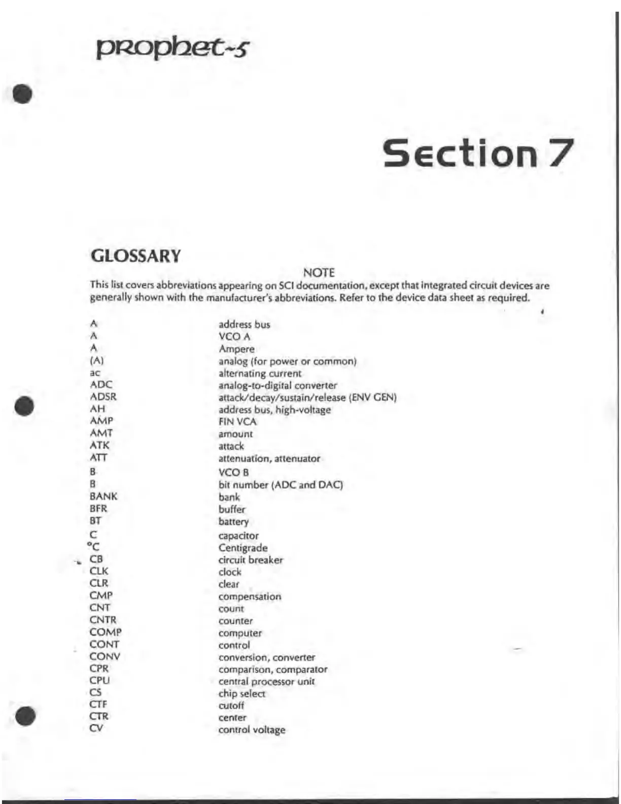 Sequential Prophet-5 1000 - Glossary