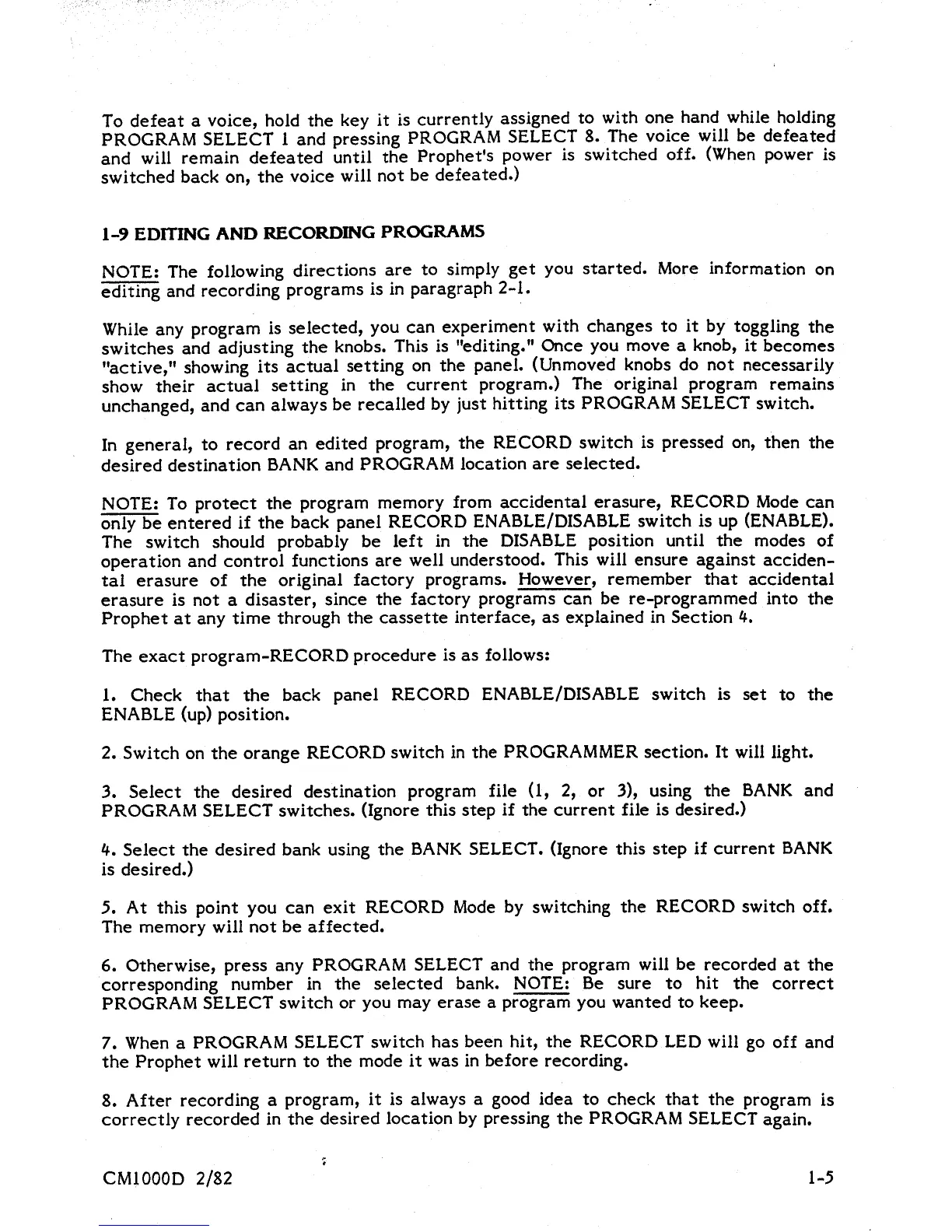 Sequential Prophet-5 1000 - 1-9 Editing and Recording Programs