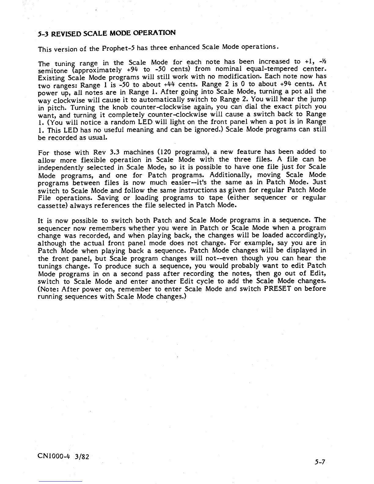 Sequential Prophet-5 1000 - 5-3 Revised Scale Mode Operations