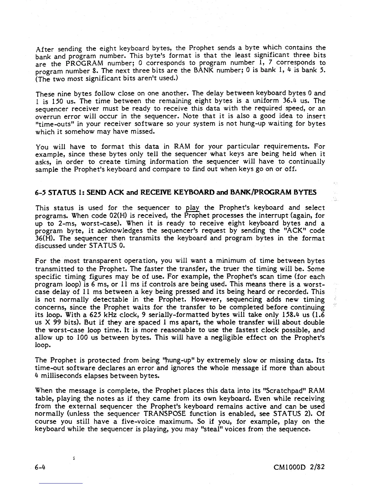 Sequential Prophet-5 1000 - 6-5 Status 1: ACK and Keyboard;Program Receive
