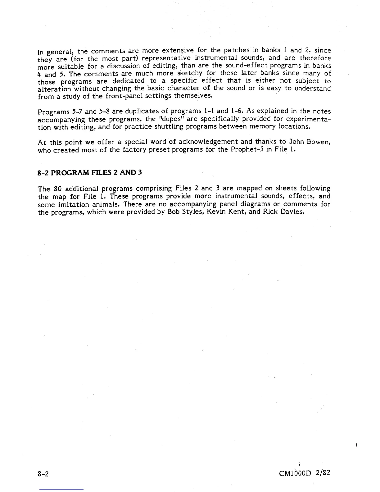 Sequential Prophet-5 1000 - 8-2 Program Files 2 and 3 Overview