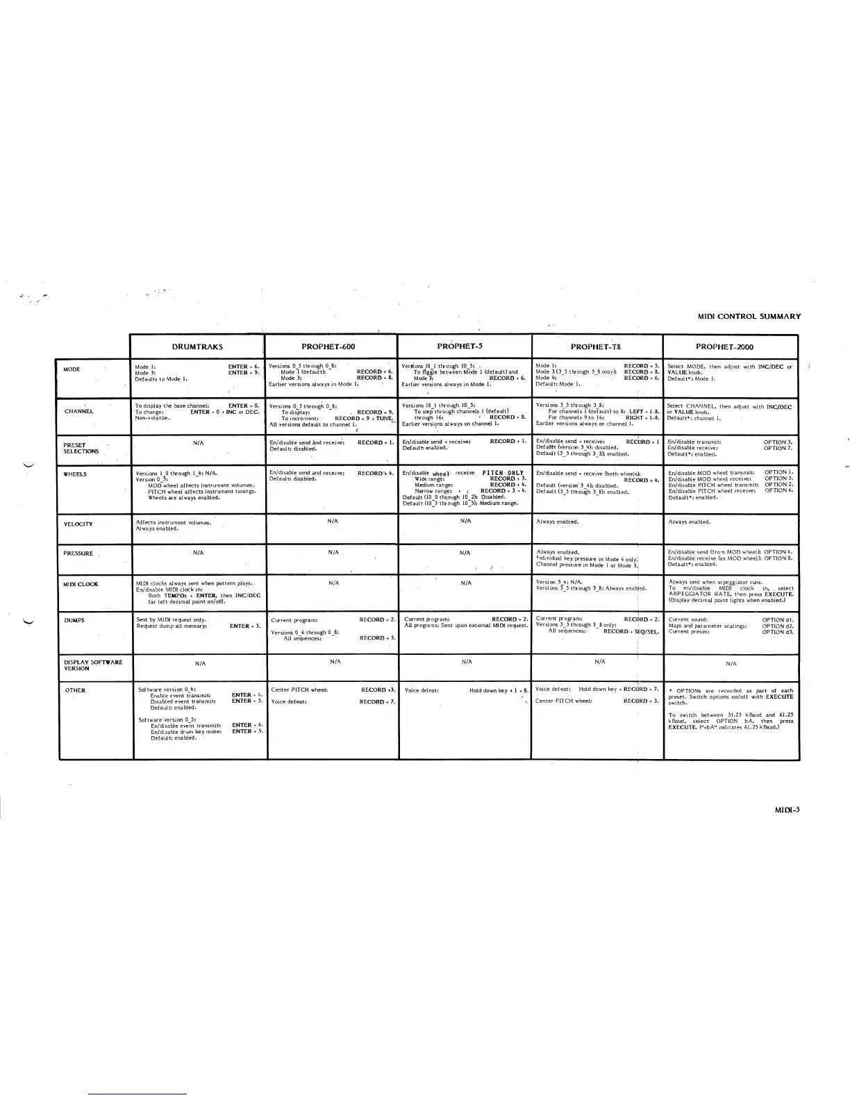 Sequential Prophet-5 MIDI - MIDI Control Summary