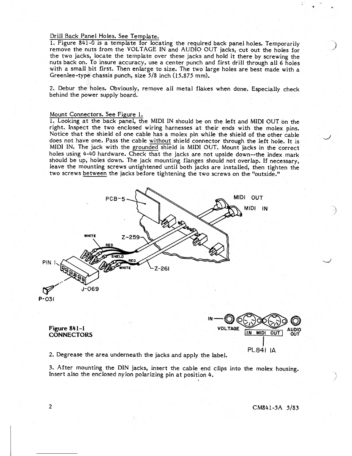 Sequential Prophet-5 MIDI - Drill Back Panel Holes; Mount MIDI Connectors