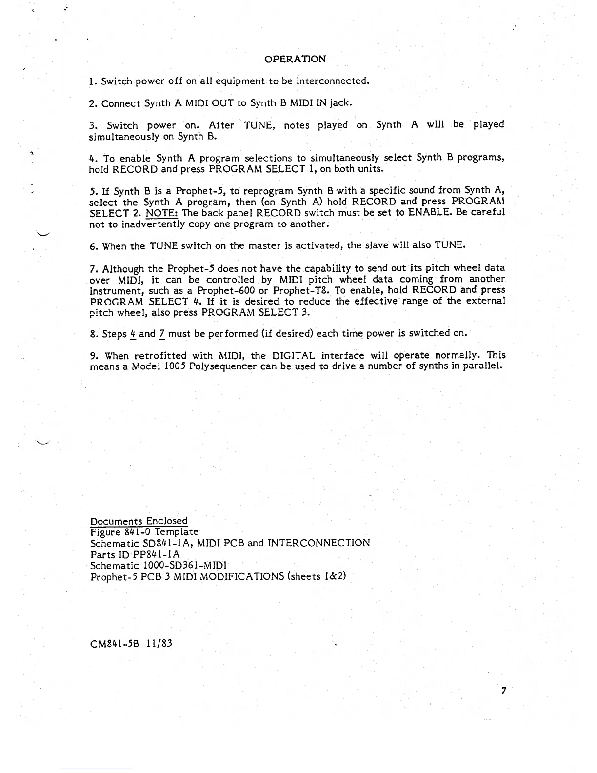 Sequential Prophet-5 MIDI - OPERATION; MIDI Interconnection and Control