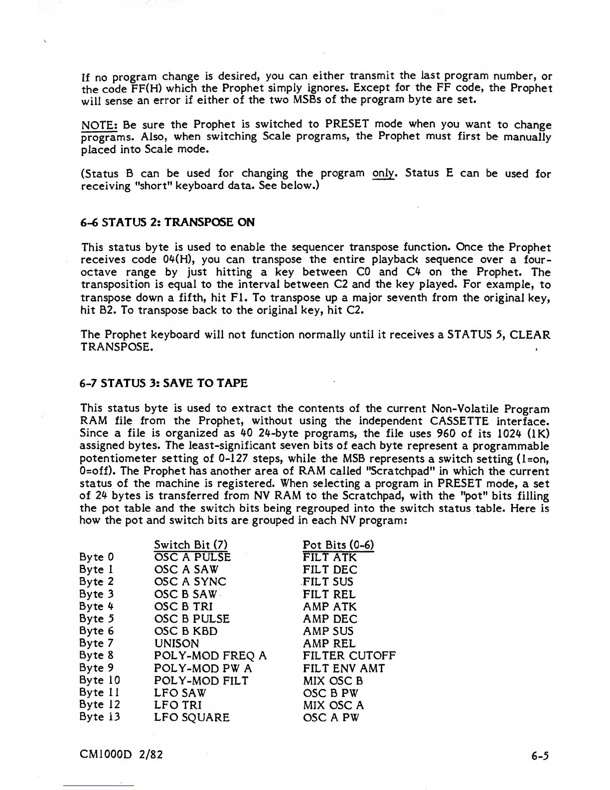 O=off). The Prophet has another area of RAM