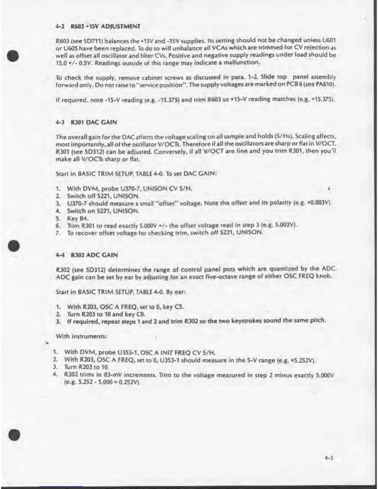 Sequential prophet 5 - R603 +15 V Adjustment; R301 Dac Gain; R302 Adc Gain