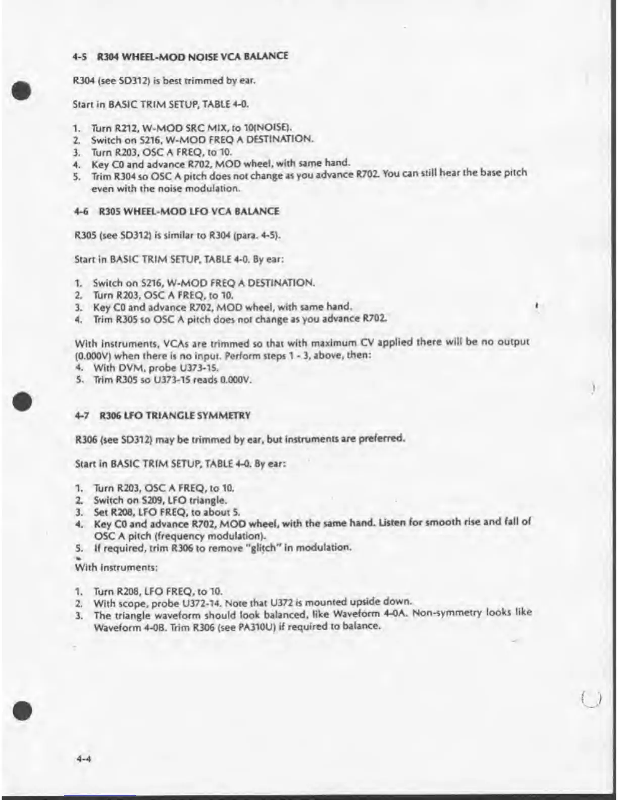 Sequential prophet 5 - R304 Wheel-Mod Noise Vca 8 Alance; R305 Wheel-Mod Lfo Vca Balance; R306 Lfo Triangle Symmetry