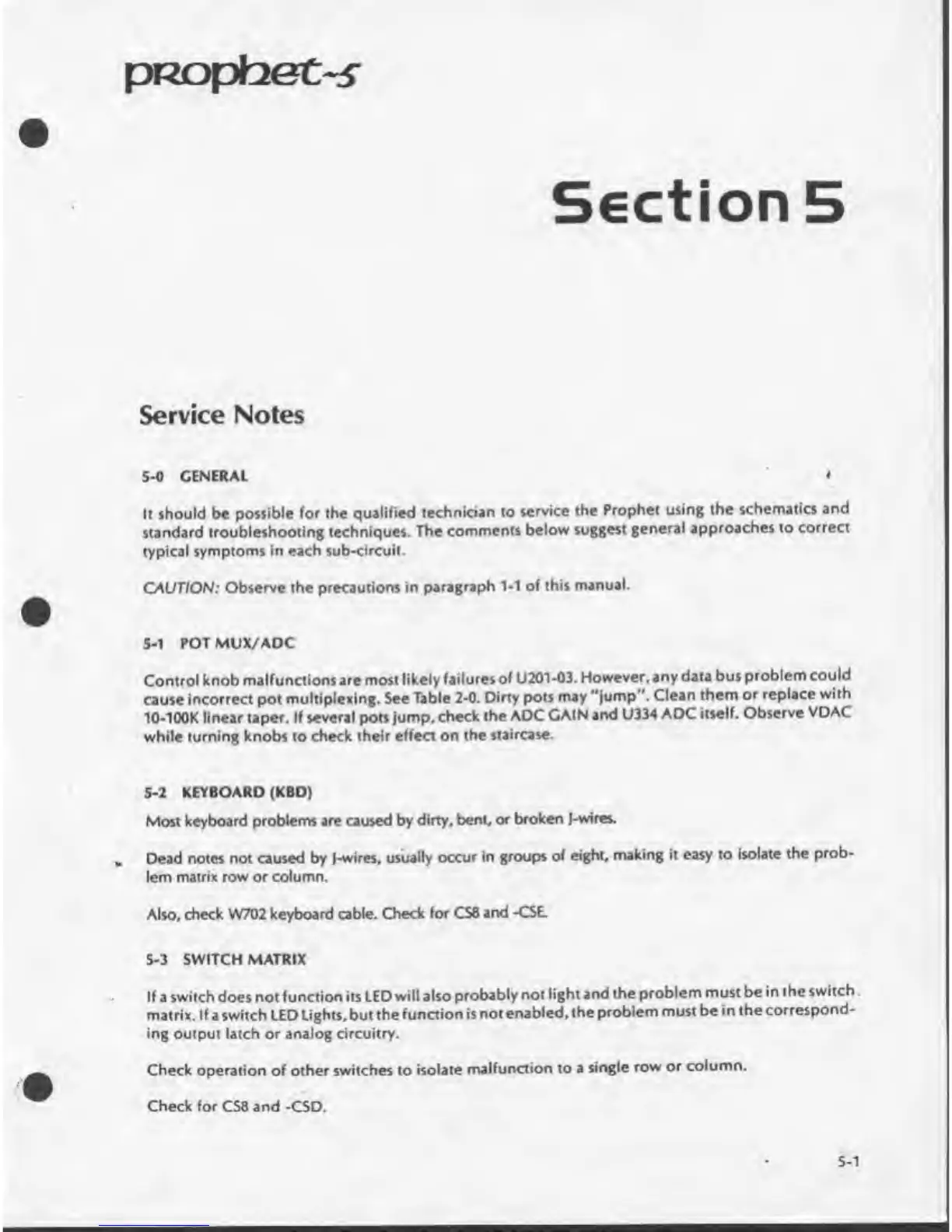 Sequential prophet 5 - Section S; Service Notes; General.5-1; Pot Mux;Adc