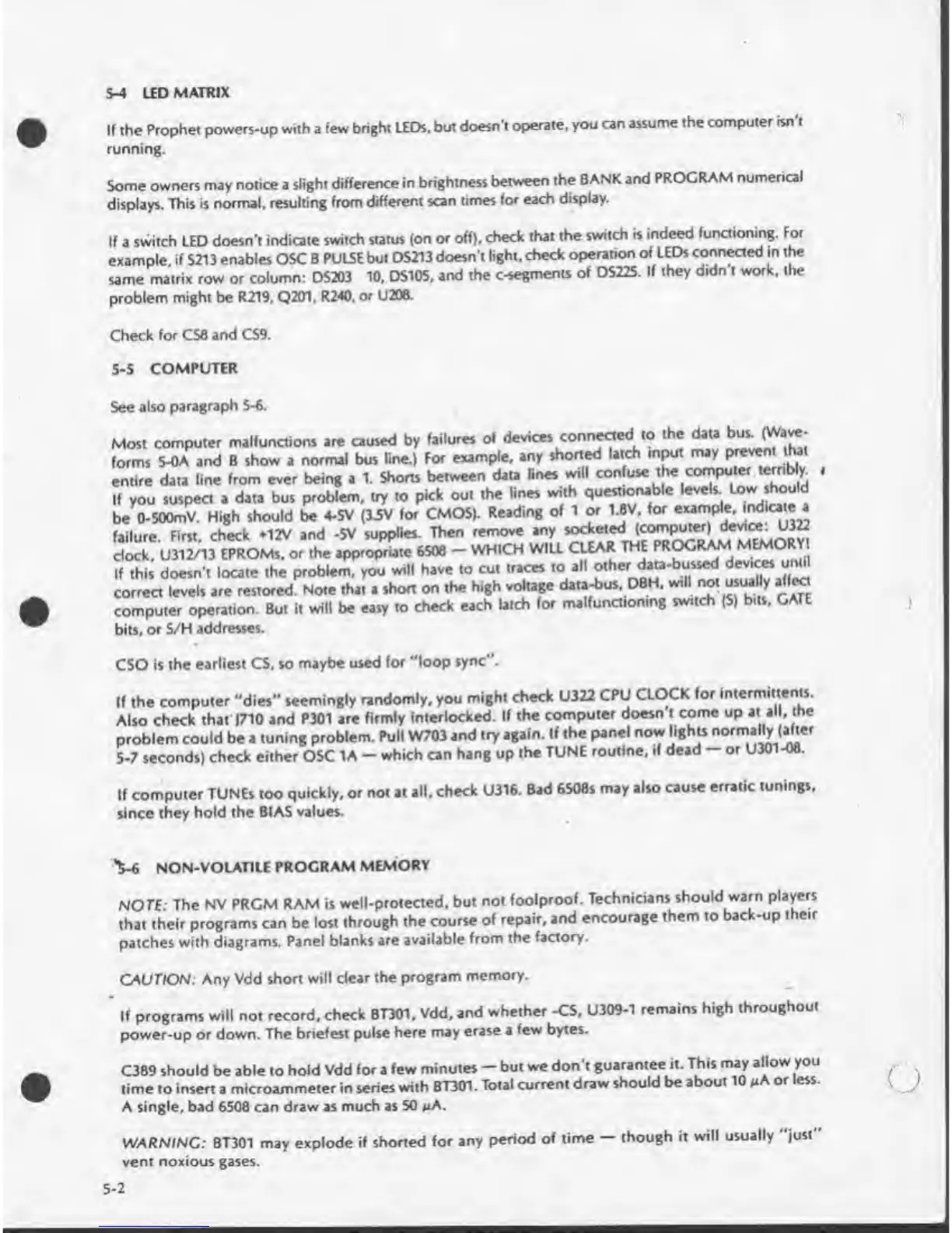 Sequential prophet 5 - Led Matrix.5-2; Computer.5-2; Non-Volatile Procram Memory.5-3