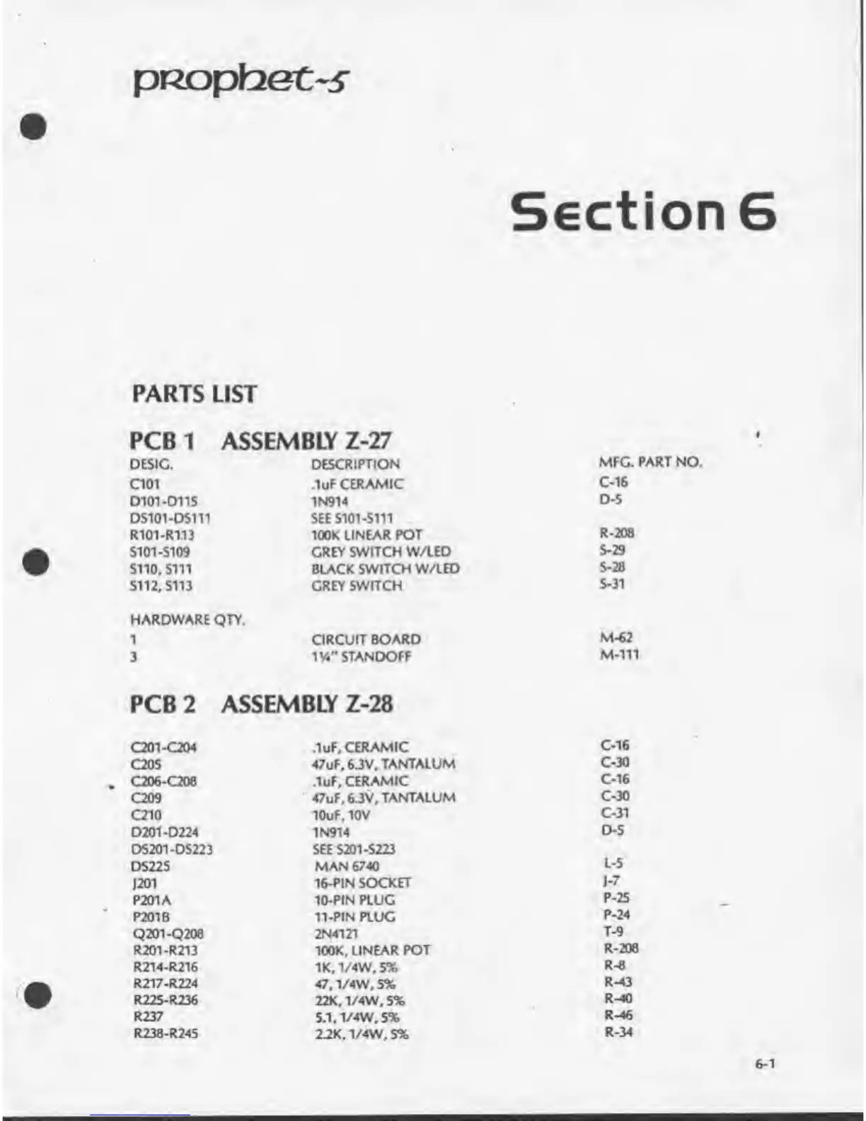 Sequential prophet 5 - Parts List; Pcb2.6-1; Pcb3.6-2; Assembly