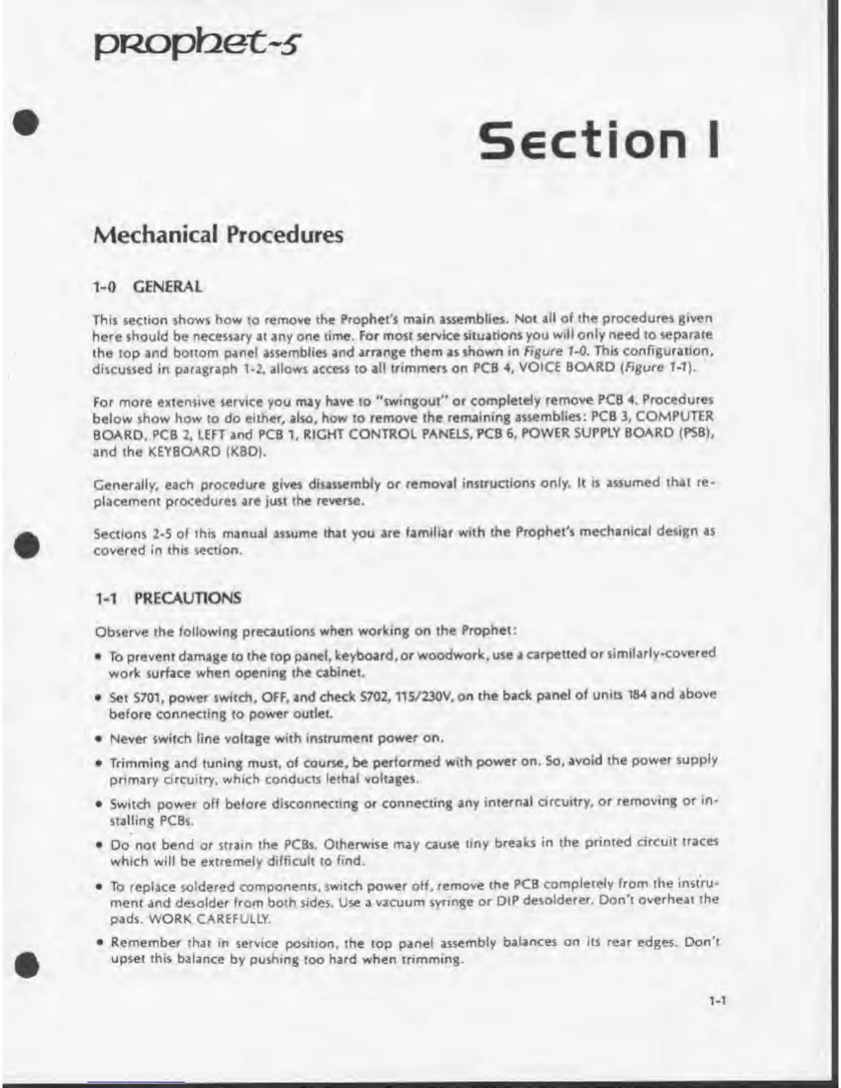 Sequential prophet 5 - Mechanical Procedures Page; General; Precautions
