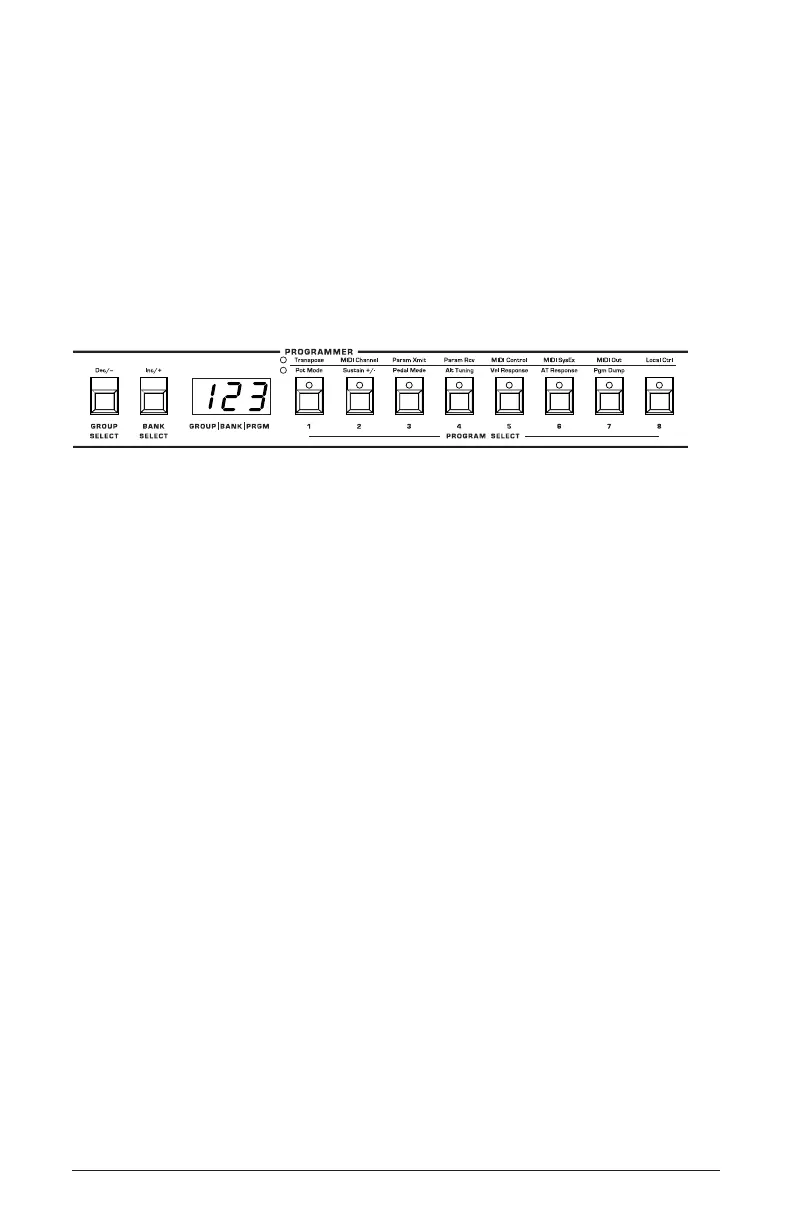 Use the group, bank, and program selector buttons to select and recall