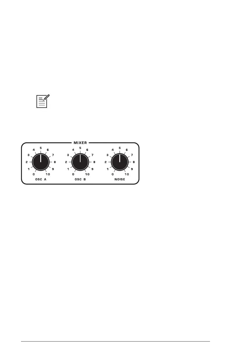 the levels of the oscillators in the mixer section, the sustain parameter in the Amplier