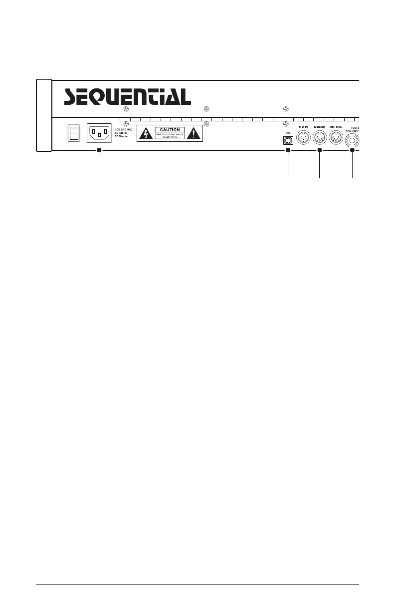 3. MIDI In, Out, and Thru—Standard 5-pin MIDI DIN connectors.