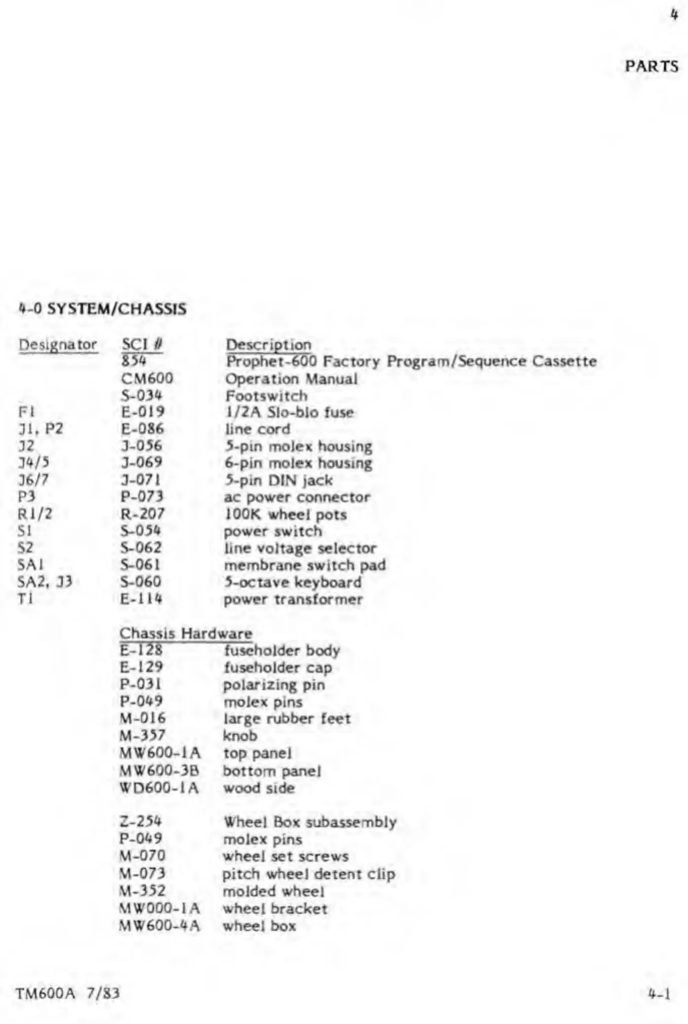 Sequential PROPHET-600 - Parts; System;Chas5 Is