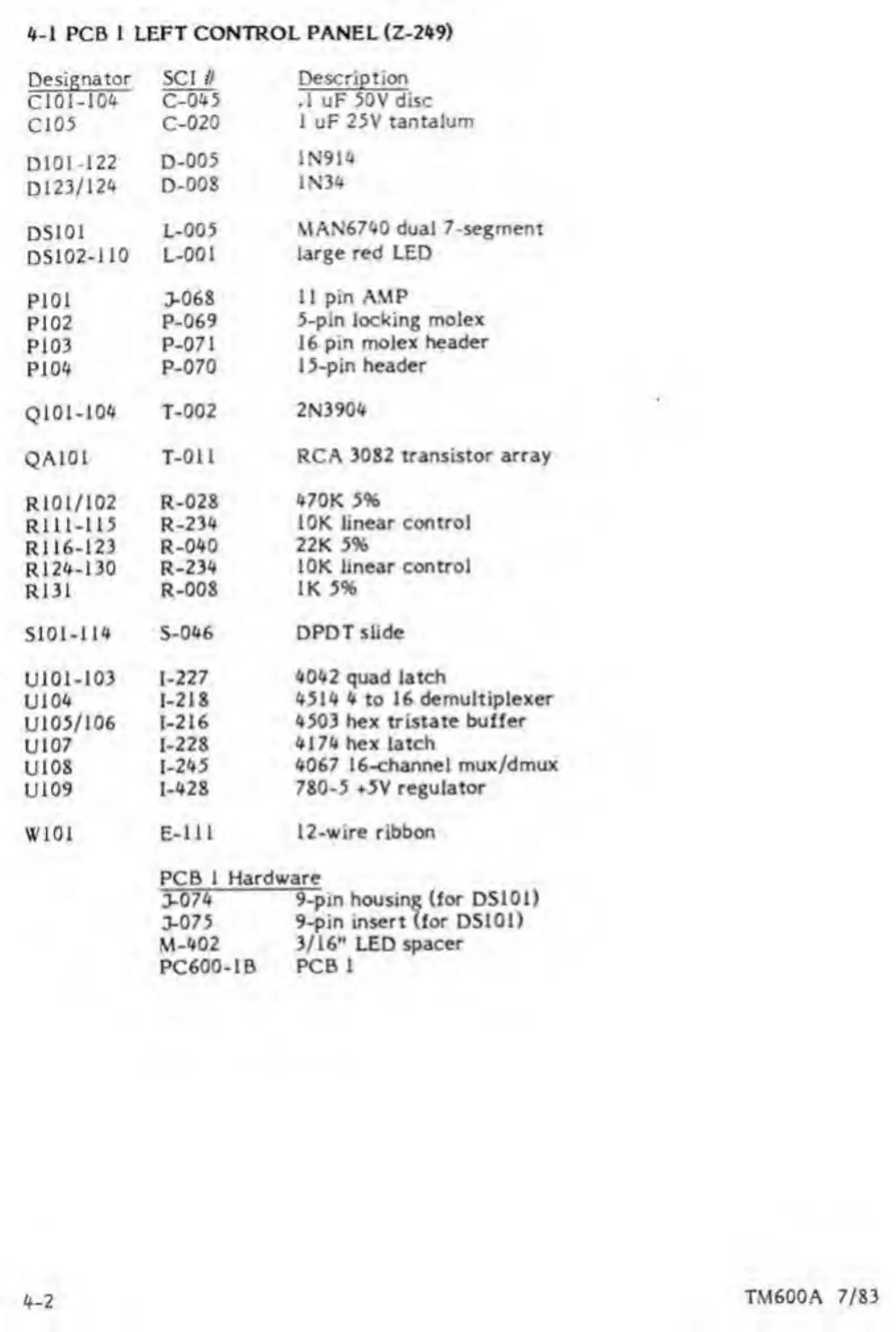 Sequential PROPHET-600 - Pcb 1 Left Control Panel