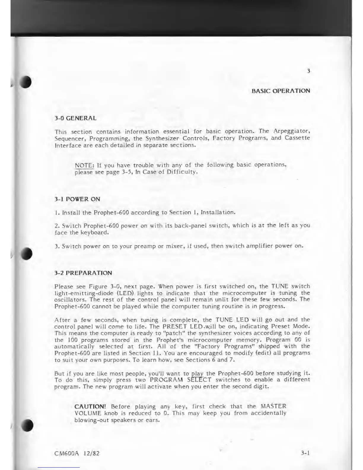 Prophet-600 cannot be played while the computer tuning routine is in progress.
