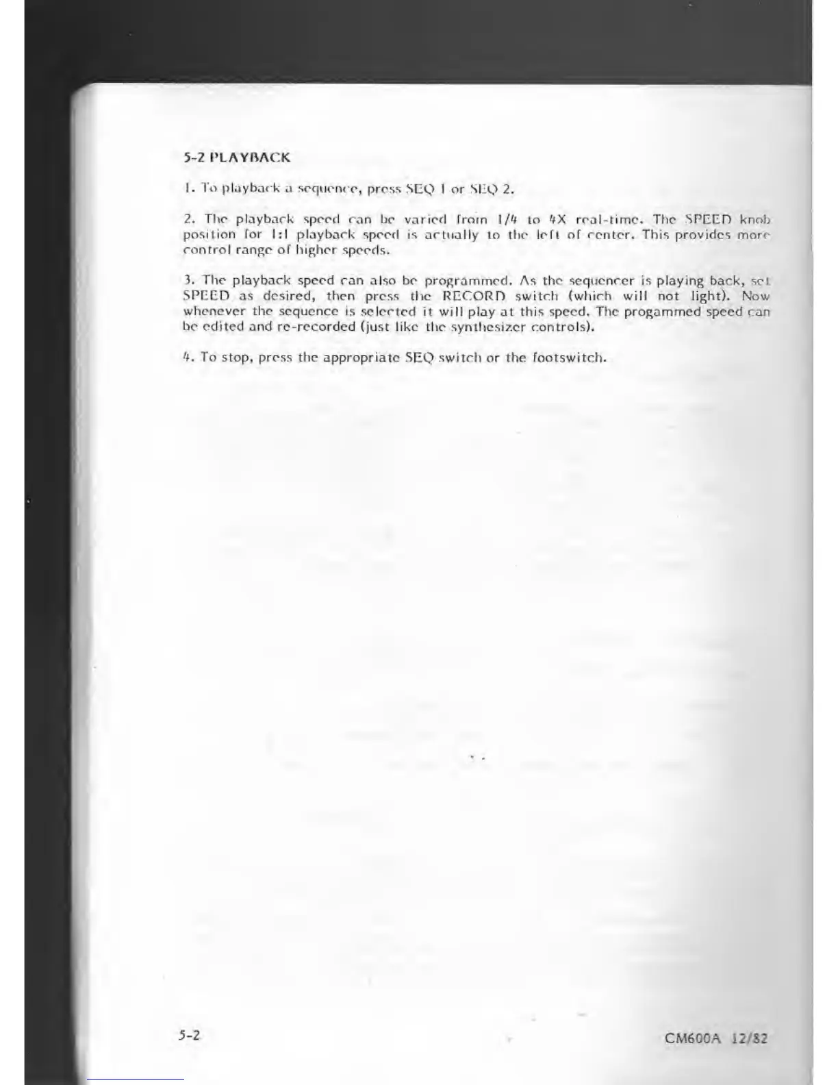 playback speed can also be programmed. As the sequencer is playing back, set