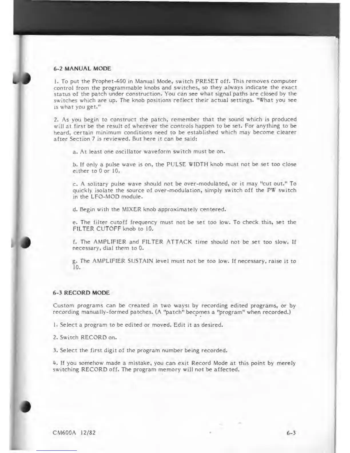 1. To put the Prophet-600 in Manual Mode, switch PRESET off.