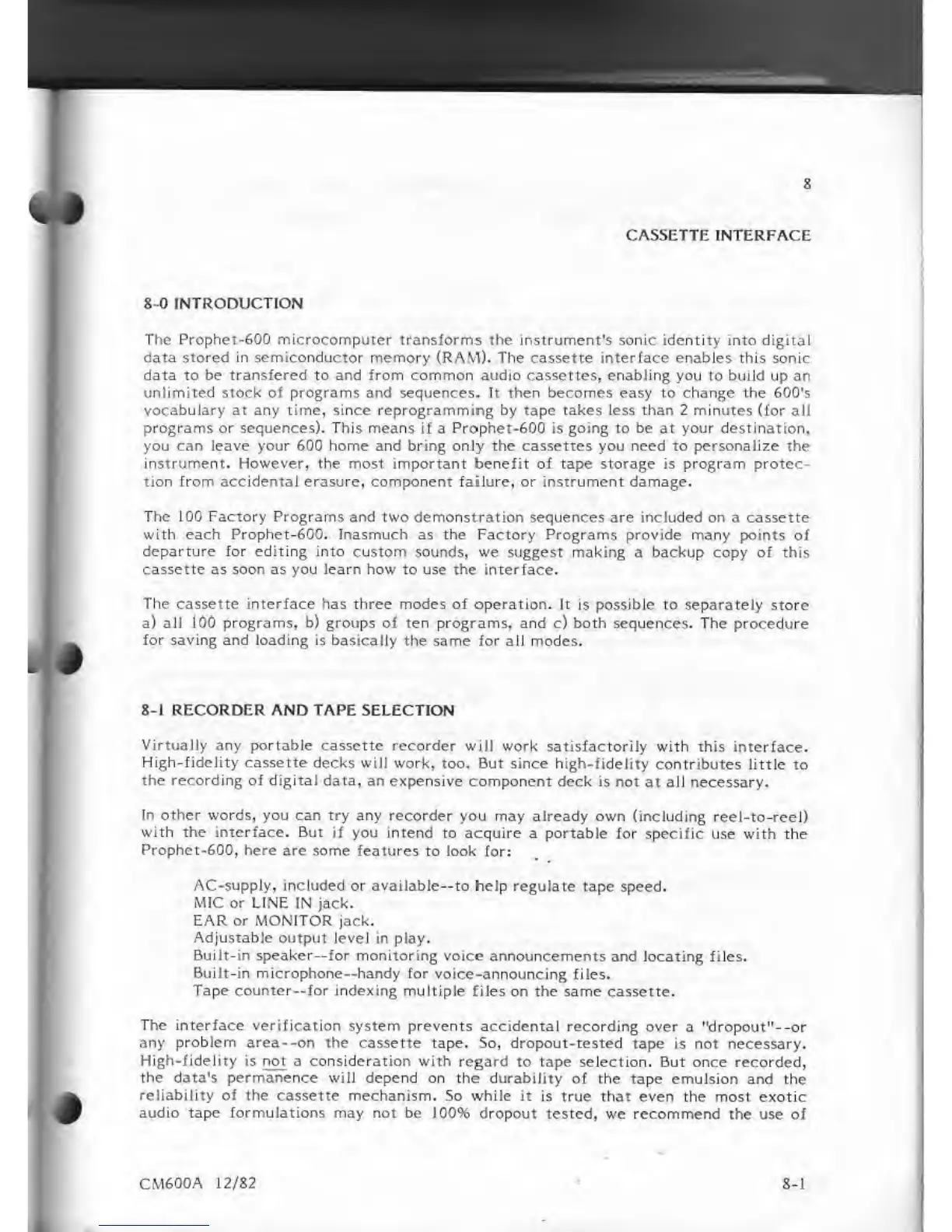 data stored in semiconductor memory (RAM). The cassette interface enables this sonic