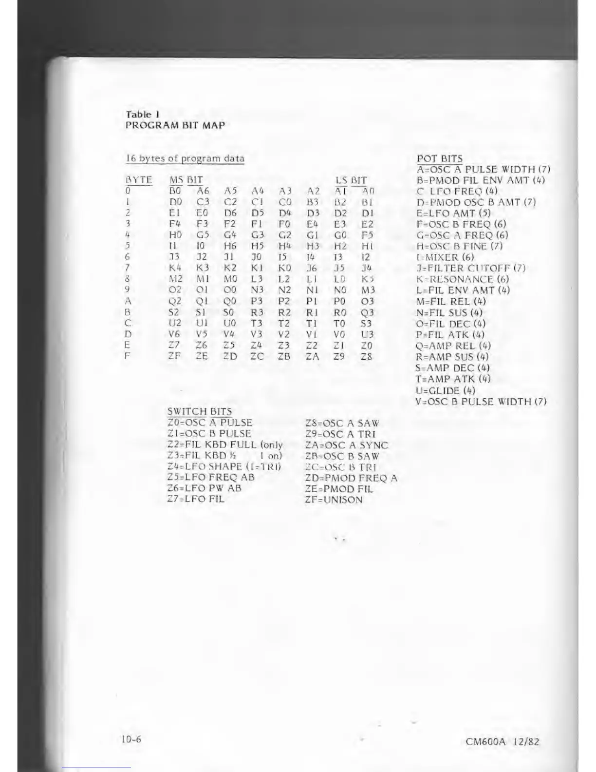 byte s of program data POT BITS