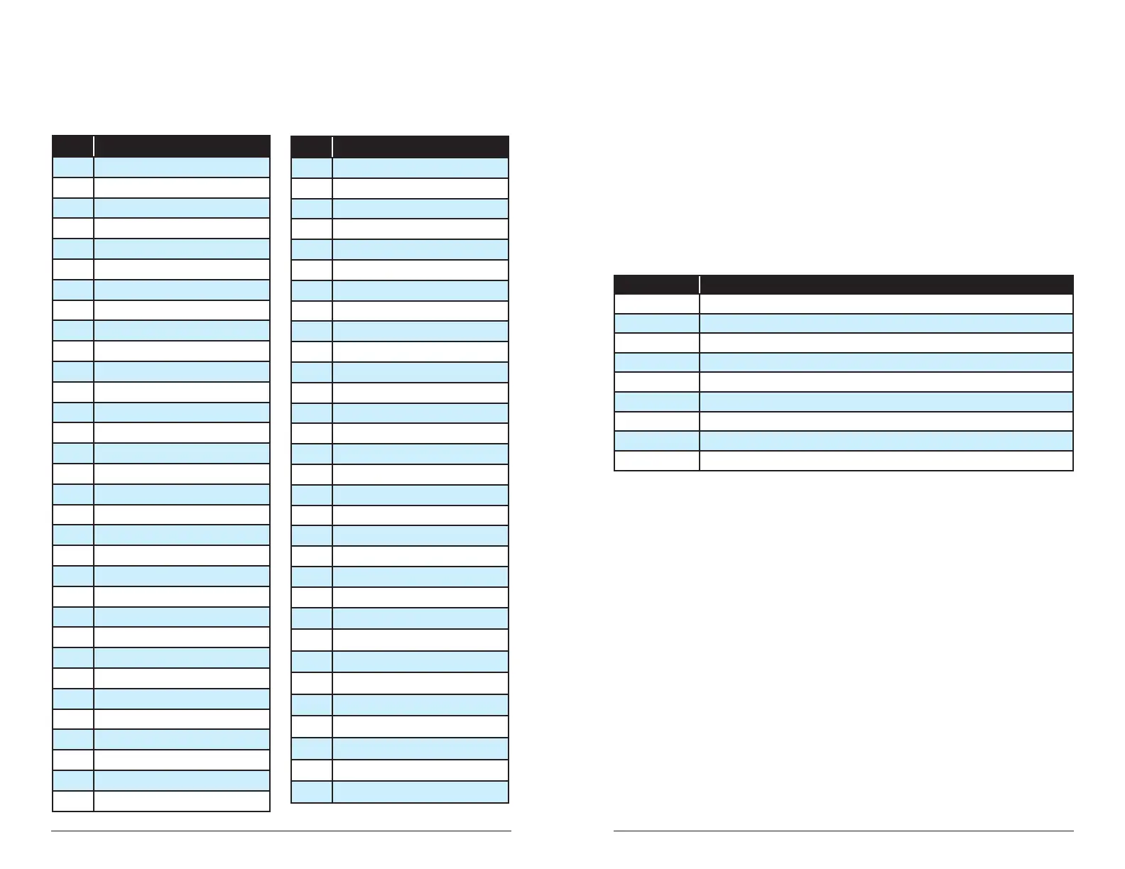 The parameter number can be found in the two tables below, one for