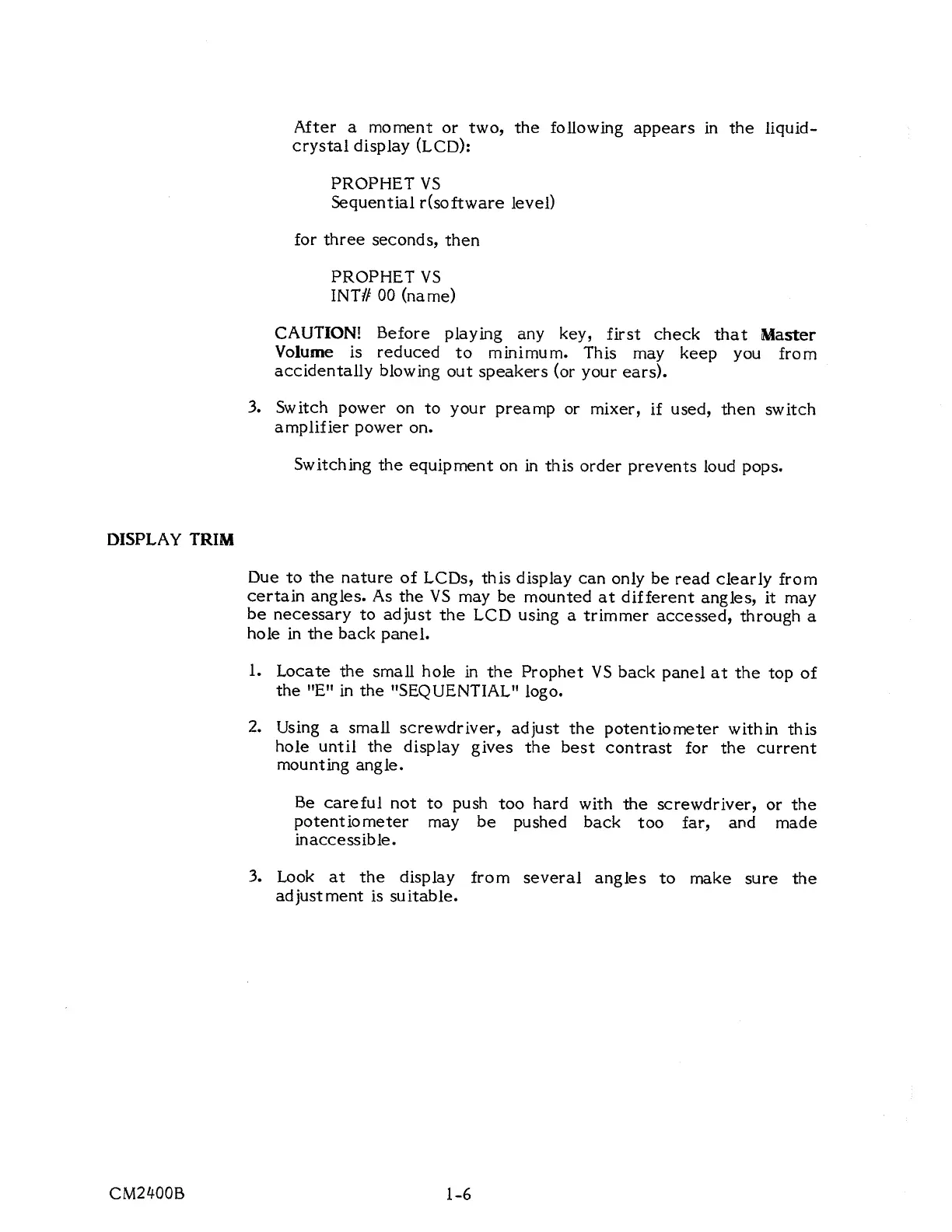 Sequential Prophet VS - DISPLAY ADJUSTMENT