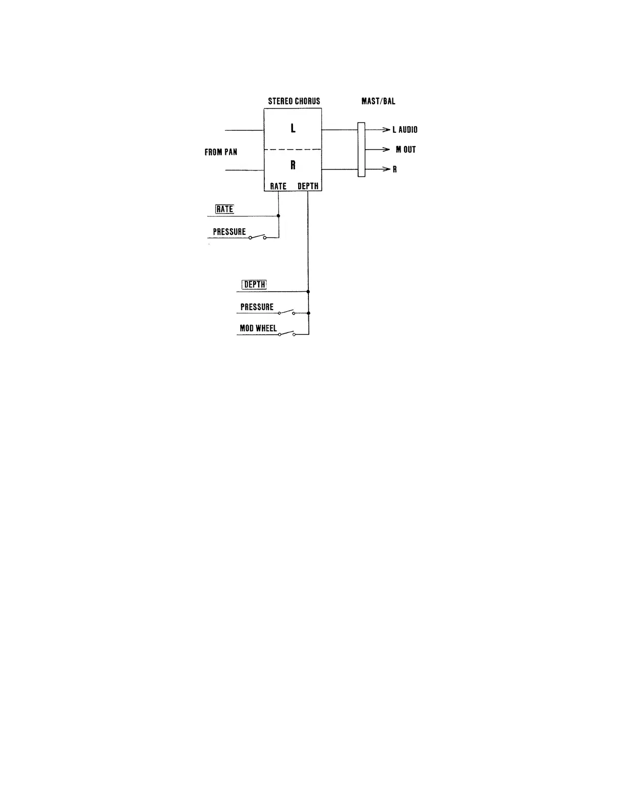 As shown in Figure 12-1, the Mod wheel can control the chorus depth, while