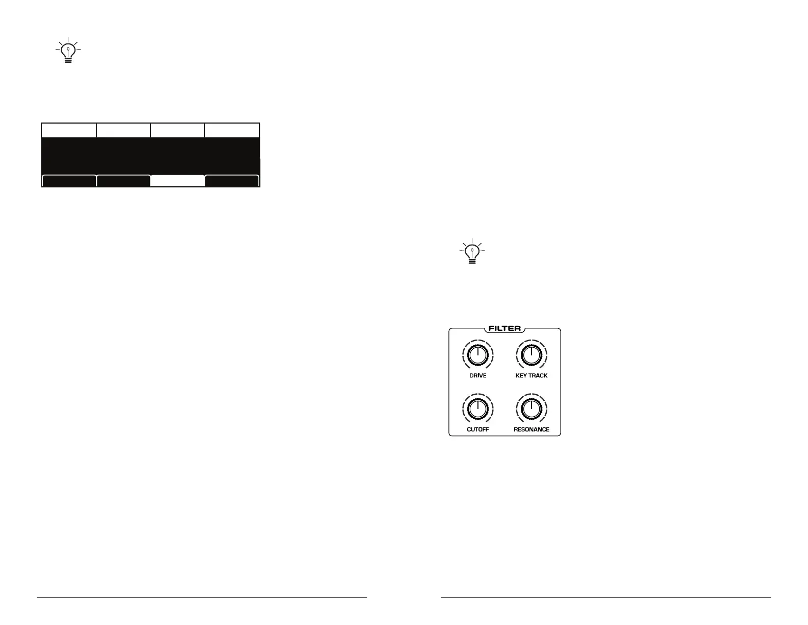 2. Hold down a note and rotate the lter’s cutoff knob. Notice how it cuts