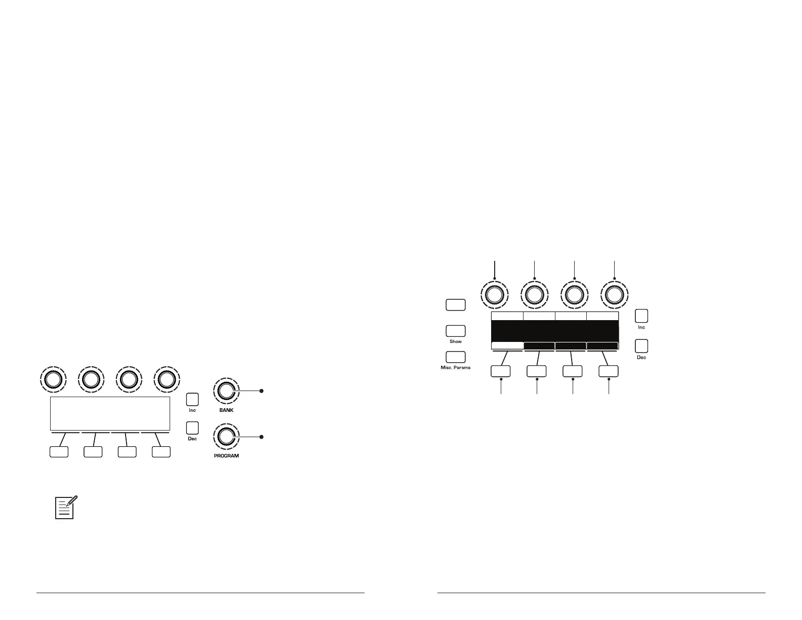 7. Use the bank and program knobs to scroll through the factory sounds.