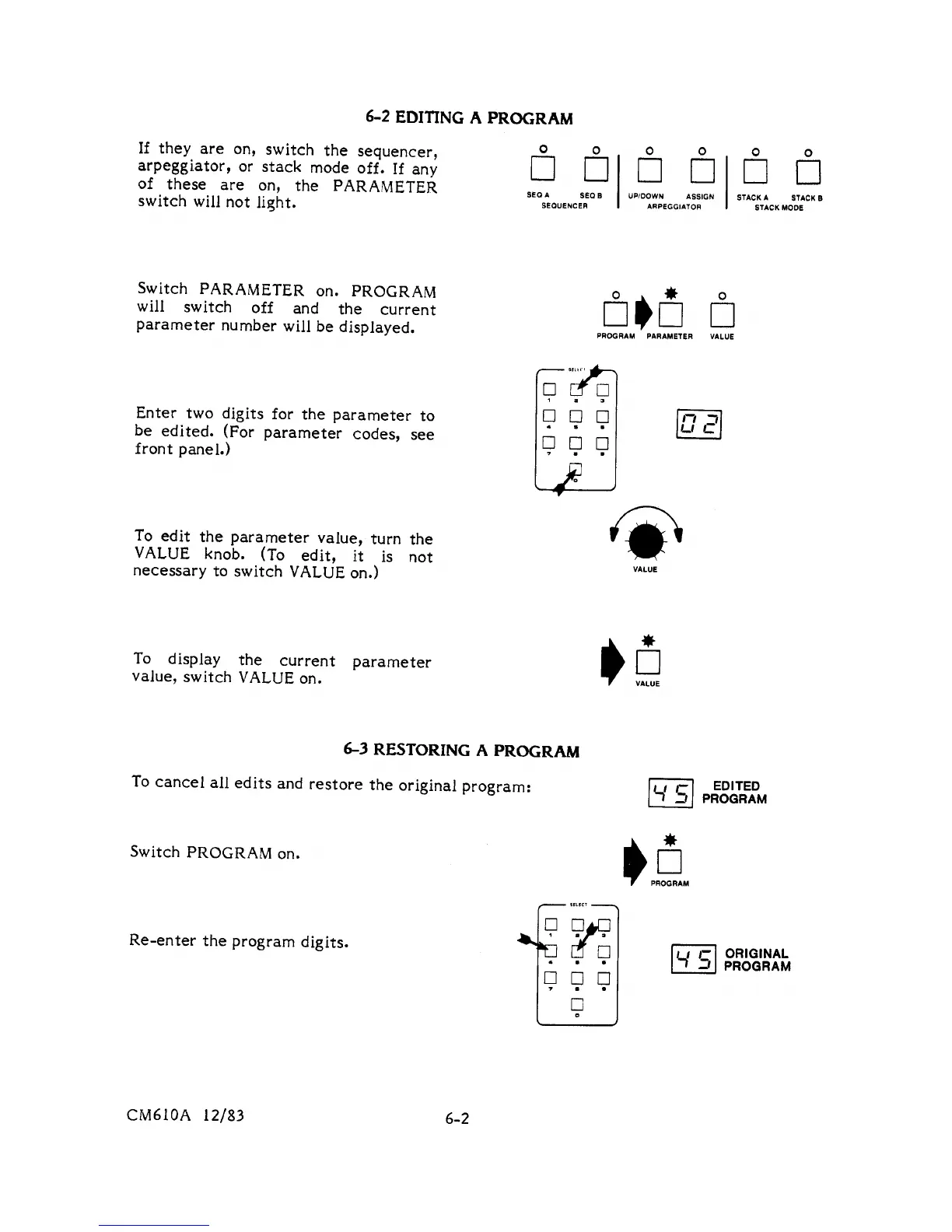 Sequential Six-Trak - 6-2 Editing a Program; 6-3 Restoring a Program