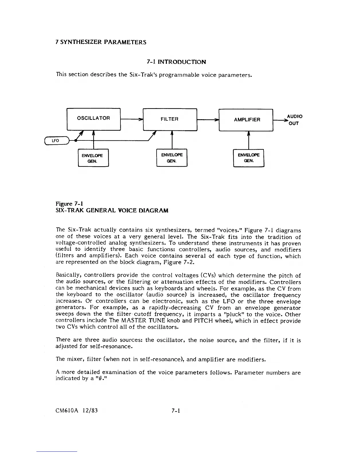Sequential Six-Trak - 7 SYNTHESIZER PARAMETERS; 7-1 Parameter Introduction