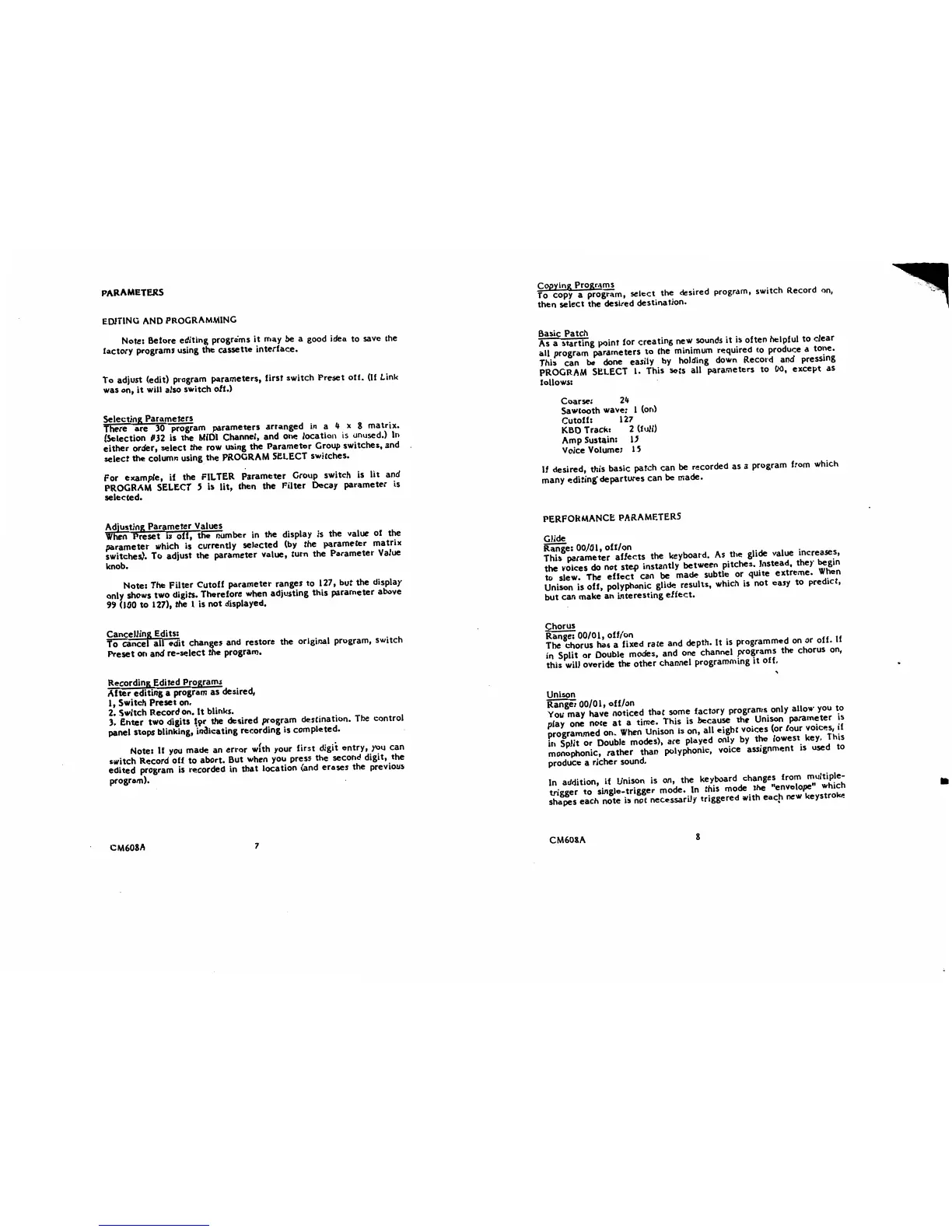 Sequential Split-Eight - Parameters and Programming; Editing and Programming Guide; Parameter Selection Methods; Adjusting Parameter Values