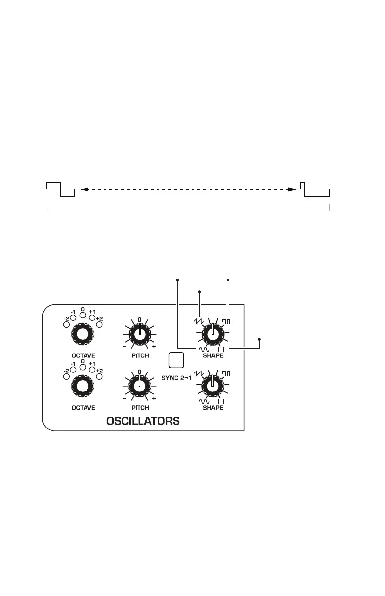 Oscillators 1 and 2 generate sine, sawtooth, and pulse waves. You can
