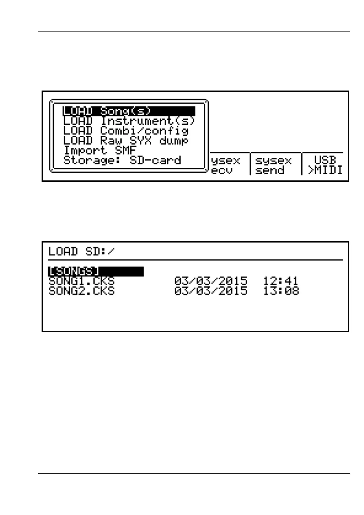 The “LOAD Song(s)” option can be used to load a song saved individually, or multiple songs