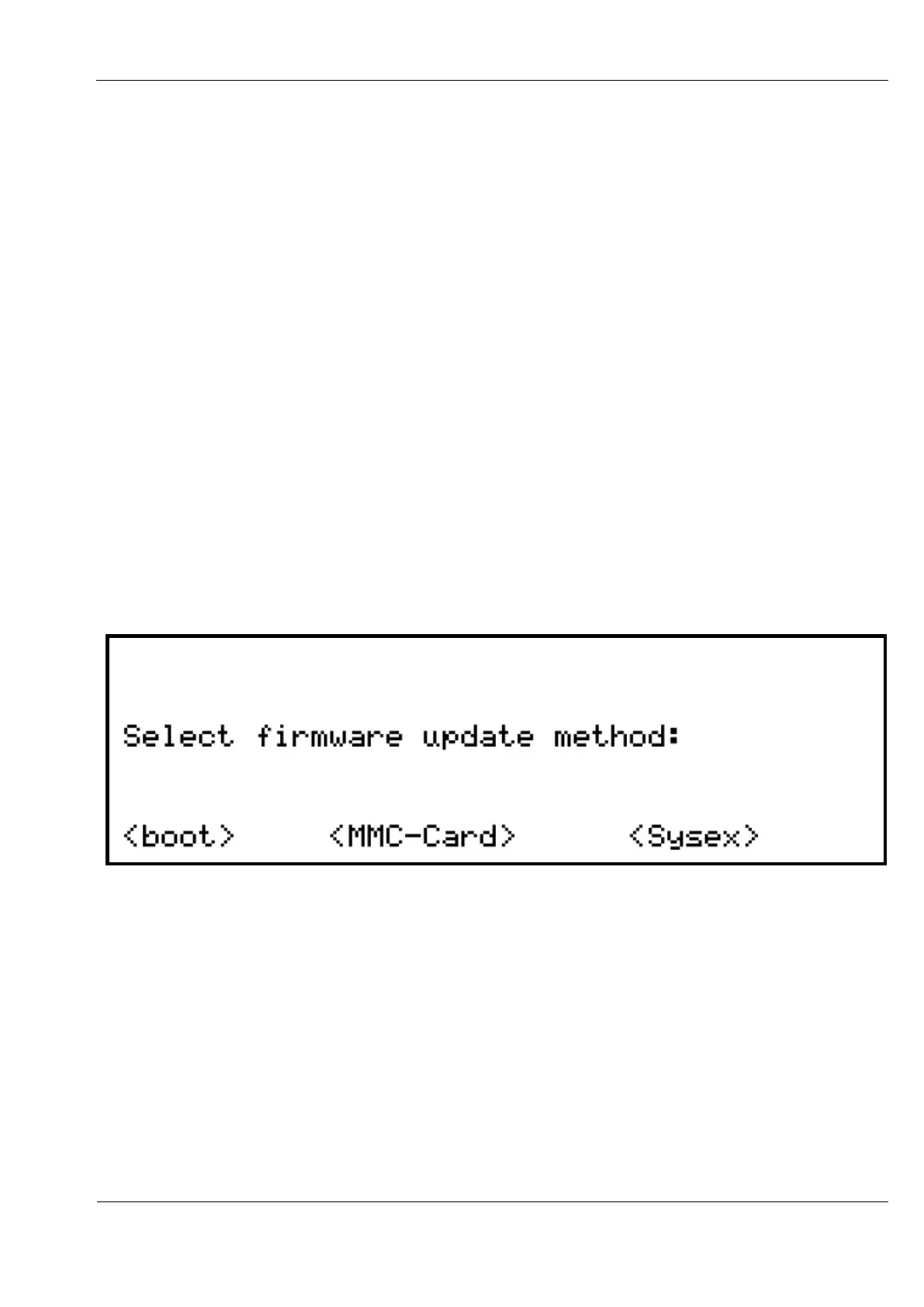 Cirklon supports the loading of operating system updates via MIDI or MMC/ SD-card.