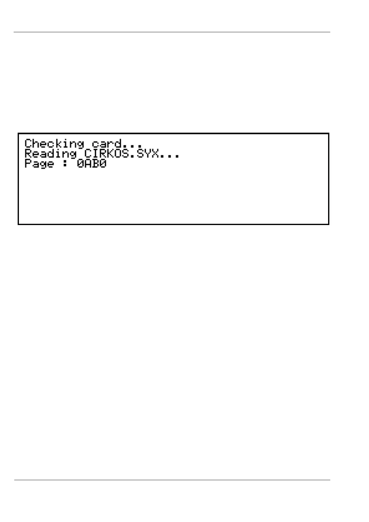 With the card containing CIRKOS.SYX in the root folder inserted in the rear panel, press