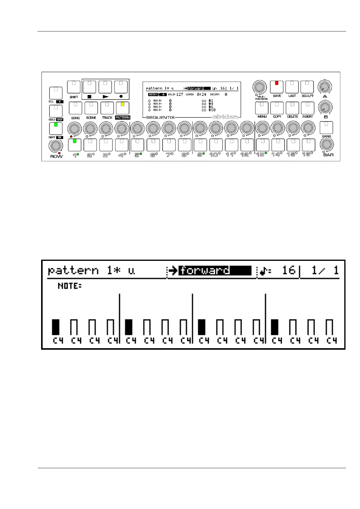 Press the ROW encoder, or the PATTERN key, to switch to the row view: